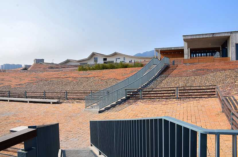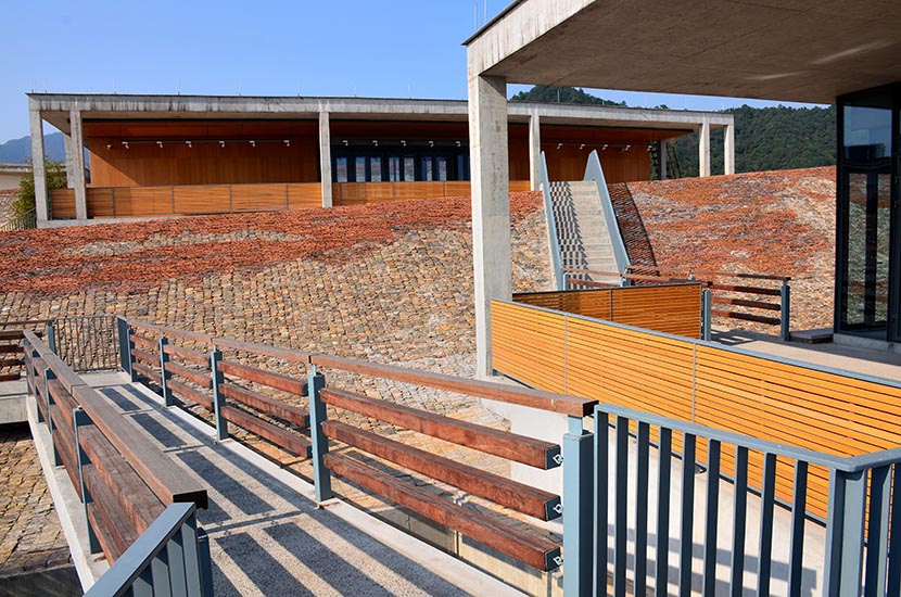 富陽公望美術(shù)館也叫“富春山館”,位于杭州市富陽區(qū),是集博物館、美術(shù)館、檔案館“三館合一”的建筑綜合體,由設(shè)計大師王澍設(shè)計。大師以蘇東坡《題西林壁》里的描繪為靈感來源,按照中國傳統(tǒng)的山水序列,建筑整體構(gòu)筑中呈現(xiàn)近山、遠(yuǎn)山瀠洄呼應(yīng)的構(gòu)筑法則和“三遠(yuǎn)”視角,與咫尺之遙的富春山水互相輝映。美術(shù)館設(shè)計成內(nèi)山和外山,站在屋頂會看到一整片美術(shù)館都是外山,而頂上兩件小居,正是設(shè)計師心中的富春山居。