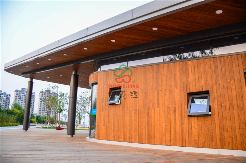 該公園東側(cè)為海濱高速公路,西側(cè)為濱海旅游區(qū)辦公區(qū)域,北臨海博路,南至規(guī)劃海旭道,是從城市空間到海邊的過渡型景觀。項目的建設(shè)是在尊重歷史和現(xiàn)實條件基礎(chǔ)上,結(jié)合先進的生態(tài)建設(shè)理念,大面積運用了桃花江竹材科技的環(huán)保竹材作為主體裝飾材料,公園內(nèi)的主體建筑,采用桃花江竹材科技的全竹裝飾來裝潢,高炭防腐竹材做外墻和吊頂裝飾,色澤明亮,渾然一體,既現(xiàn)代又傳統(tǒng)的竹材裝飾風(fēng)格為公園營造自然、郊野景觀氛圍,為市民提供一個全新的休閑娛樂場所。