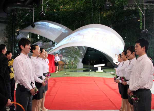 湖南館外形是雙“魔比思環(huán)”相扣。在這個無始無終的曲面環(huán)上投影湖南歷史、現(xiàn)在與未來的畫面,寓意人類對未來的期盼和追求停歇。展示采用圖片和影視交互滾動的方式,展現(xiàn)了湖南“自然、人文、未來”的暢想,詮釋了未來城市形態(tài)——生態(tài)環(huán)保、環(huán)境宜人、能源可循環(huán)利用、可持續(xù)發(fā)展的“都市桃花源”。