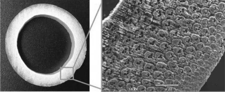 竹子是一種最典型天然的功能梯度材料。 從結(jié)構(gòu)上看,竹子是一種纖維增強(qiáng)復(fù)合材料,由兩種主要的組織組成: 作為增強(qiáng)作用的纖維(維管束) 和作為基體的薄壁細(xì)胞,這些纖維有很強(qiáng)的剛性,可以與鋼筋媲美。為了識(shí)別竹材莖稈中增強(qiáng)纖維的分布特性與竹稈抗彎剛度之間的關(guān)系,研究人員研究了竹材橫截面中的纖維分布。